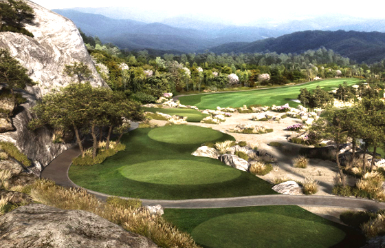 지형의 특성을 따라 설계된 자연과 가장 가까운 코스, 기네스 등재 예정의 5단 폭포가 장관을 이루는 카스카디아에서 아름답고 광대한 생명력을 느껴보십시오.